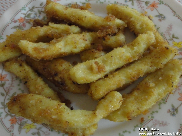 Testo prebaciti na brašnom posutu površinu i napravi valjak , iseci na manje komade i pravi male valjčice. U slanu ključalu vodu spuštati valjčice i kad izadju na površinu oni su skuvani. U medjuvremenu, na ulju proprži prezlu i kuvane valjčice zamači u prezlu.