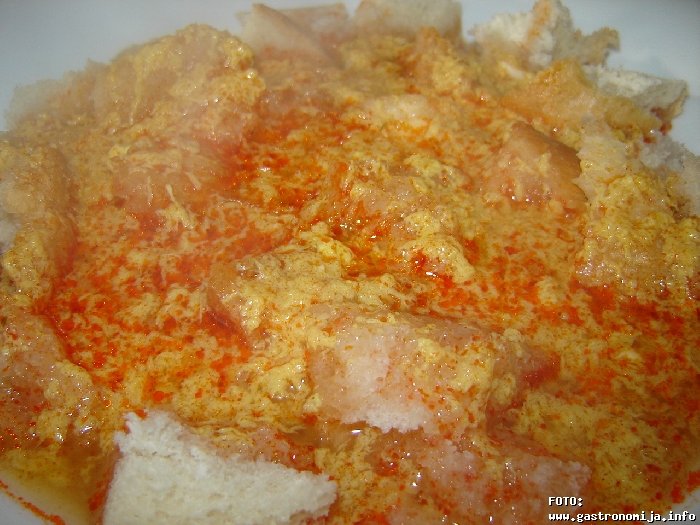 Slicno ovako se i kod nas spremalo,samo se zvalo klin corba i nisu se stavljala jaja,vec samo zaprska,voda,zacini i kad se malo prokuva,onda preliti preko nadrobljenog hljeba. A ja vrlo cesto od starog hljeba(domaceg ) pravim poparu.Vodu posoliti i dodati malo ulja,i kad provri,dodati sjeckani domaci hljeb najbolje hljeb "od juce".I odmah skinuti sa sporeta,ocijediti od vode,servirati u tanjire,a odozgo "zacvrkati" sa vrelim uljem ili masti.Narendati sir.Ovo je mnogo ukusno,i bas zasiti,a hljeb se odlicno iskoriti. |