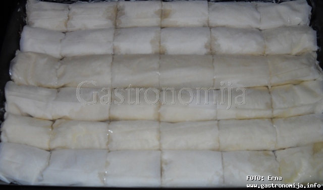 Prvo pripremiti sirup: sve sastojke kuhati oko 20 minuta, pa ostaviti da se sirup ohladi. Sjediniti mljevene orahe, mljevenu plazmu, rendanu čokoladu, griz, šećer, 100 ml ulja i malo vode ili soka od limuna. Sve dobro sjediniti. Otopiti ulje i puter. Pleh premazati puterom. Na radnu plohu staviti koru, posuti sa par kašika otopljenog putera i ulja, preklopiti drugom korom, pa na jedan kraj staviti fil.Zarolati, pa redati u pleh. Na isti način pripremiti i ostale "rolate". Izrezati na parčad, pa peći na 200 C, oko 40 minuta.Pečenu baklavu preliti hladnim sirupom.Kada se ohladi, poslužiti!